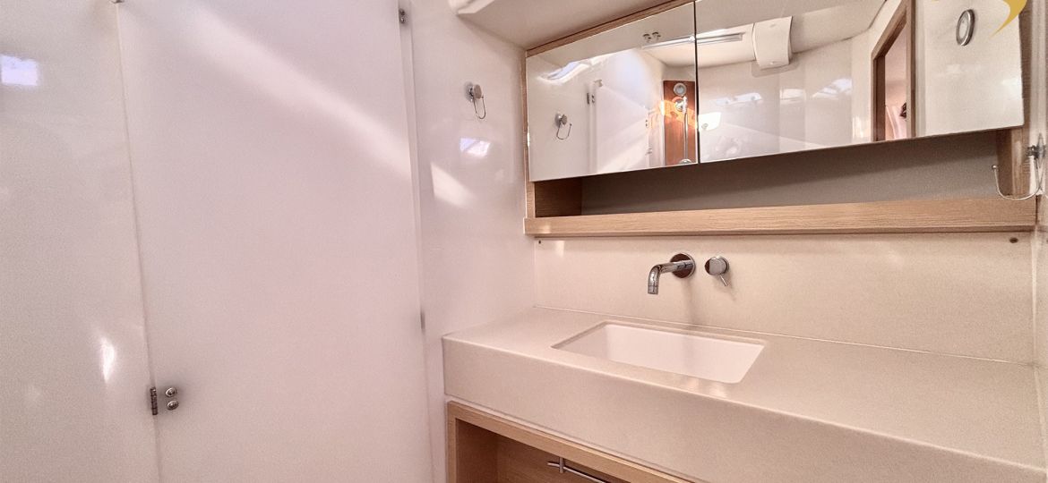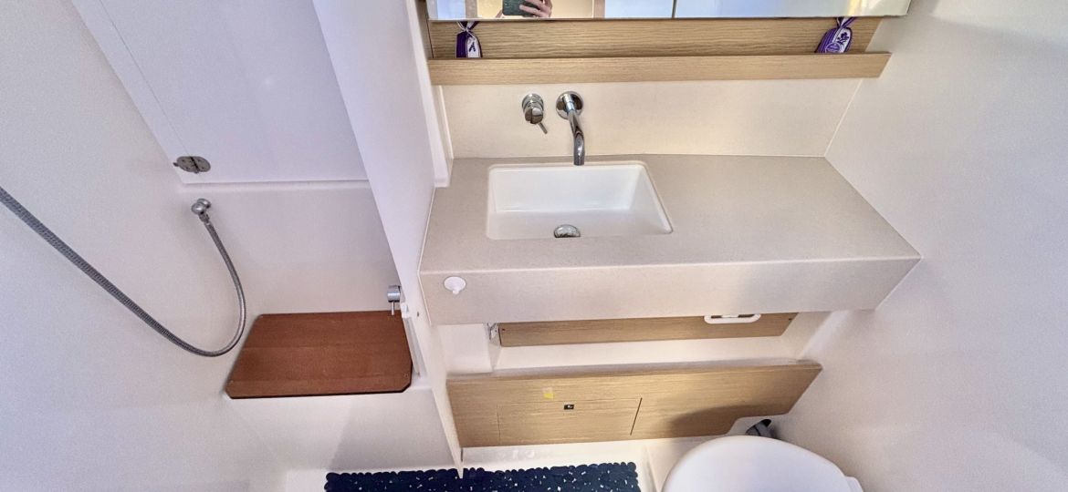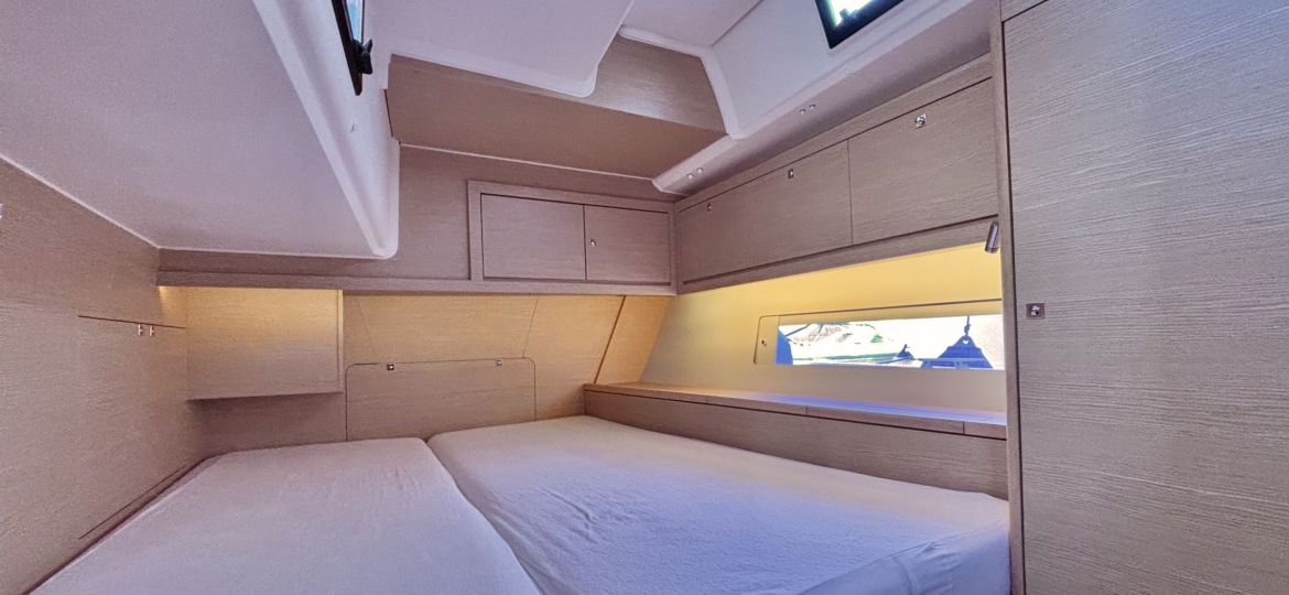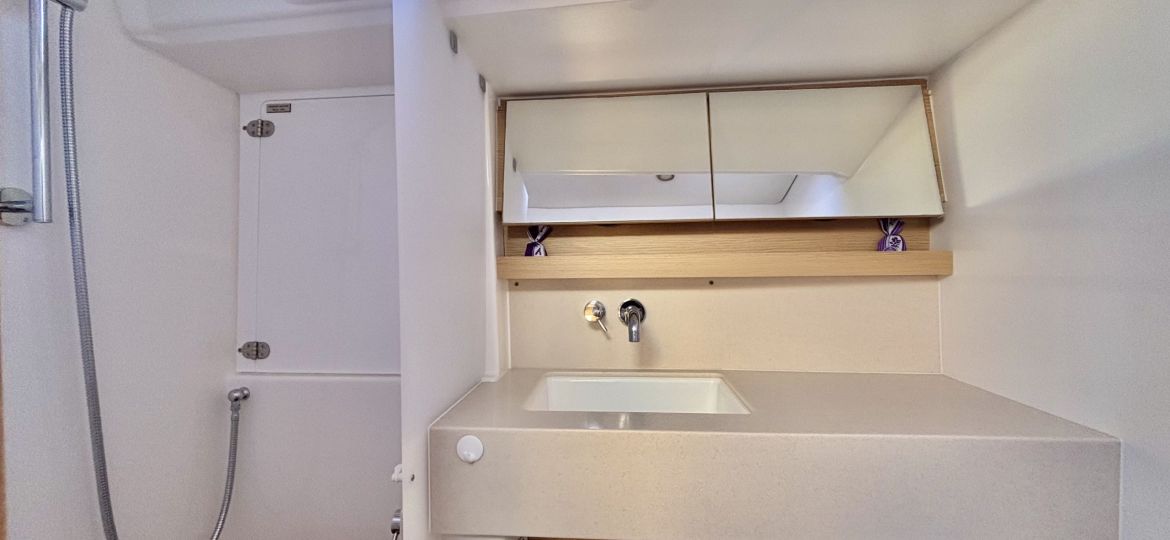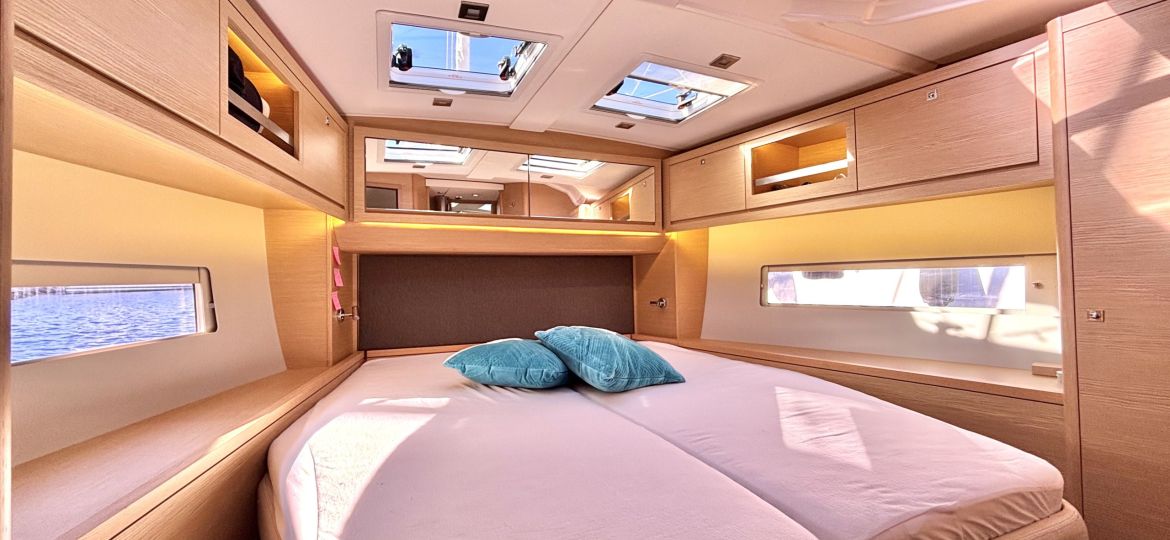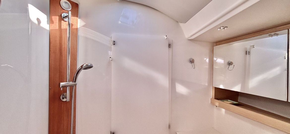 Propulsé par un moteur Volvo Penta de 75 cv, il assure des manœuvres fluides et sécurisantes au port comme au moteur. Côté voilure, vous profiterez d’une grand-voile sur enrouleur, d’un foc autovireur pour une navigation simplifiée, et d’un Code 0 pour des performances accrues dans les petits airs. Le plan de pont, spacieux et ergonomique, facilite les déplacements à bord et renforce l’agrément en navigation comme au mouillage.