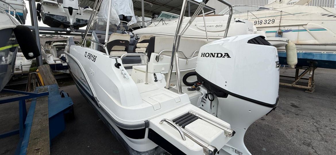 Tenor YACHTS a le plaisir de vous proposer ce Beneteau Flyer 6.6 Spacedeck de 2018, un day-boat polyvalent et parfaitement entretenu, équipé d’un moteur Honda 150 cv neuf (zéro heure, garantie constructeur). Ce modèle est idéal pour les sorties en famille, la promenade ou les activités nautiques grâce à son plan de pont spacieux, sa circulation fluide et sa modularité typique de la gamme Flyer. Homologué pour 8 personnes, il offre une sellerie avec un bain de soleil, un taud, une table, une échelle de bain et un pack électronique complet avec GPS/sondeur. Fiable, économique et déjà prêt à reprendre la mer, ce Flyer 6.6 est une opportunité rare pour naviguer sans souci dès maintenant. Visible sur rendez-vous.