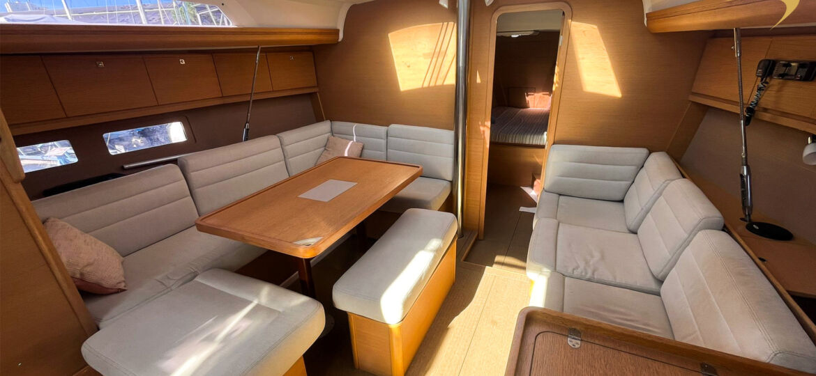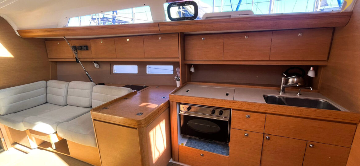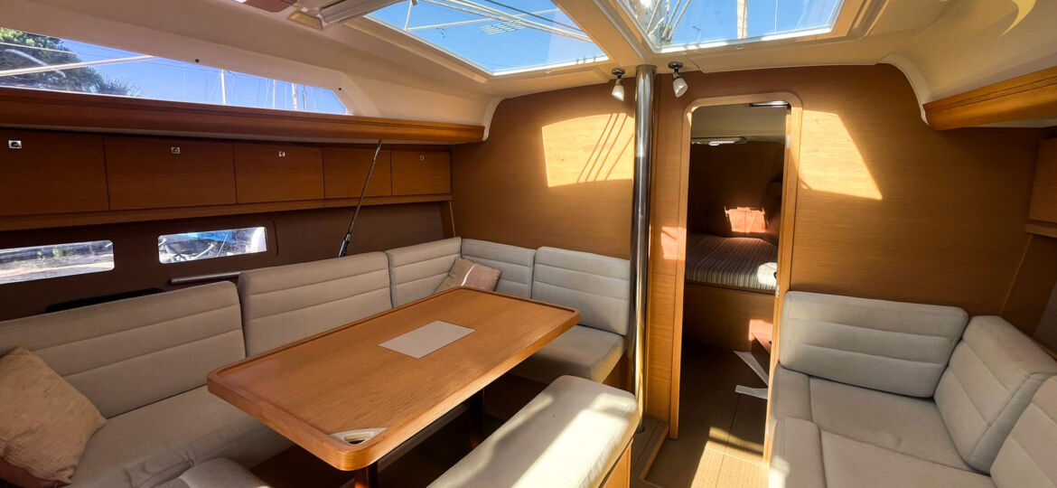 En extérieur, le cockpit spacieux et la plateforme arrière invitent à la détente et aux baignades dans les plus belles criques. À l’intérieur, les boiseries soignées et la cuisine en L témoignent du standing de la gamme Grand Large.