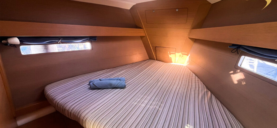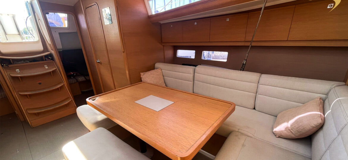 Propulsé par un moteur Volvo 55 cv, ce Dufour assure puissance et manœuvrabilité, même dans les conditions les plus variées. À la barre, on apprécie un comportement marin sûr et équilibré, fidèle à la réputation du chantier Dufour.