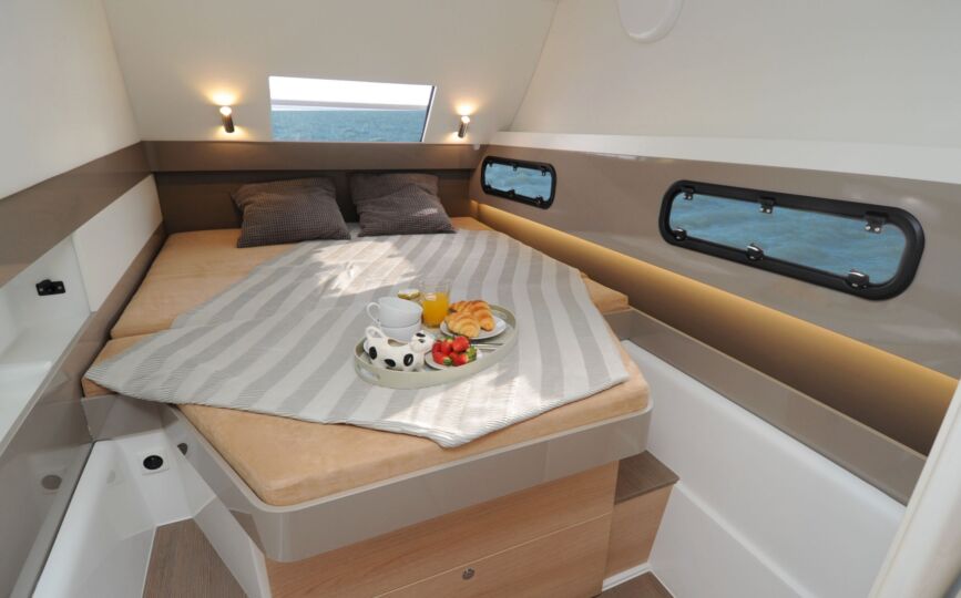 | Tirant d’eau : 1.30 m | Propulseur d’étrave : non | Salle d’eau : 2 | Bimini : oui |