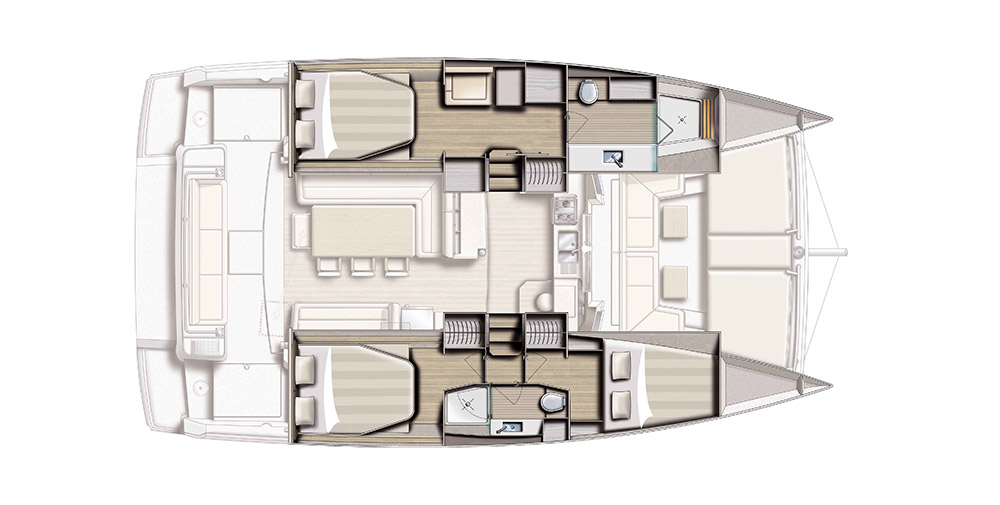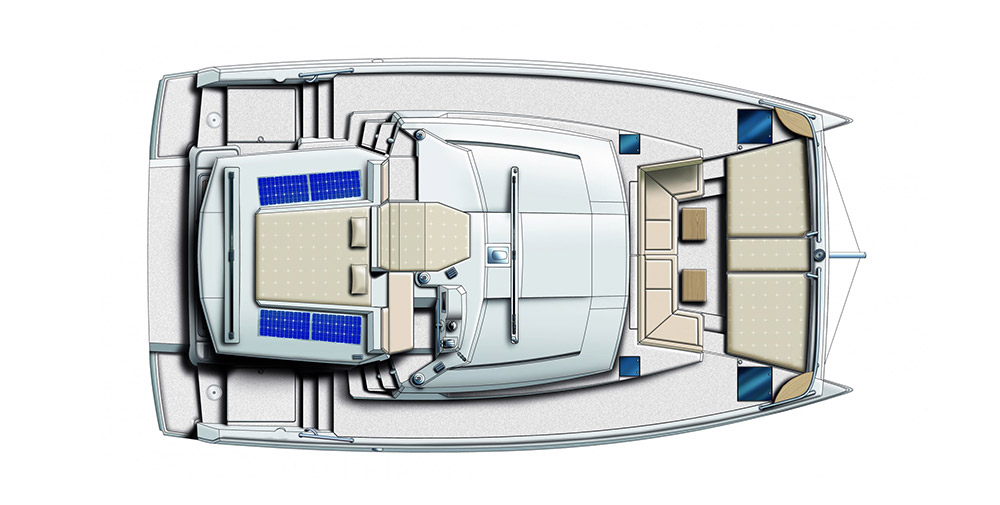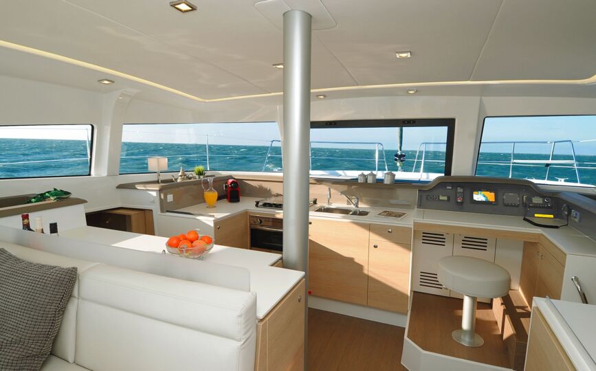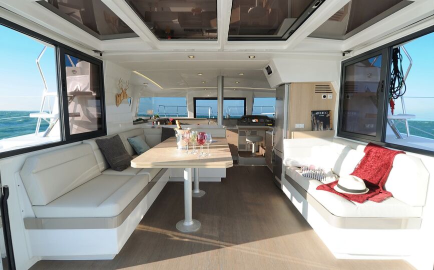 Le 4.1 de chez Bali présente des espaces de vies totalement décloisonnées faisant de ce catamaran un bateau lumineux et spacieux. Ses banquettes et bains de soleil offrent un confort unique et une vue exceptionnelle.