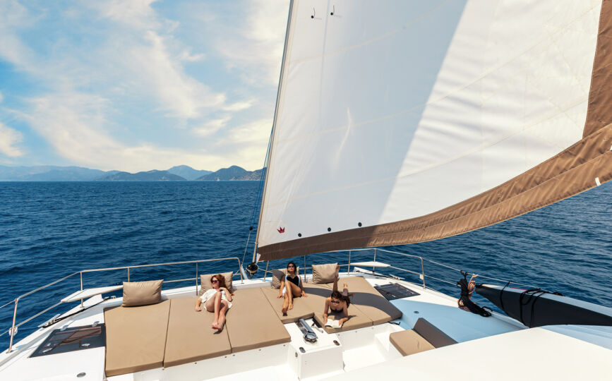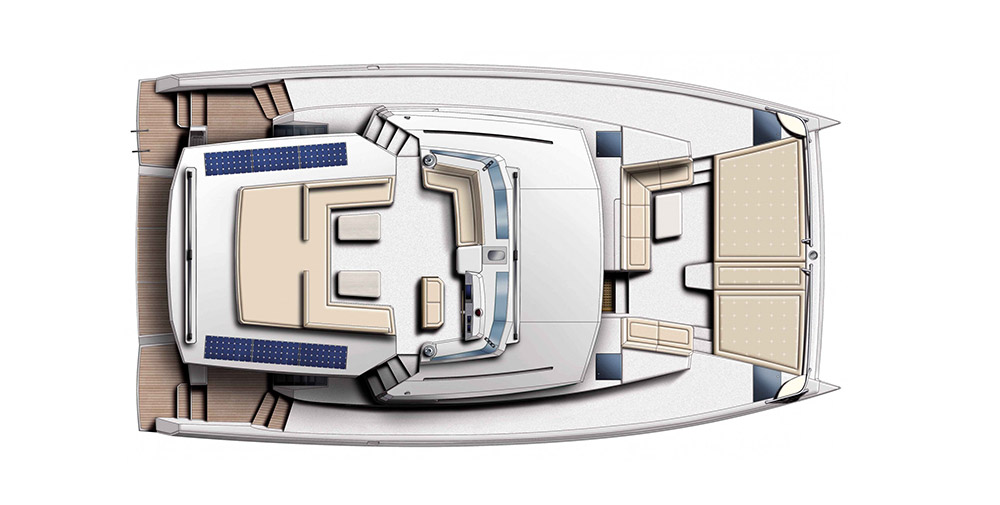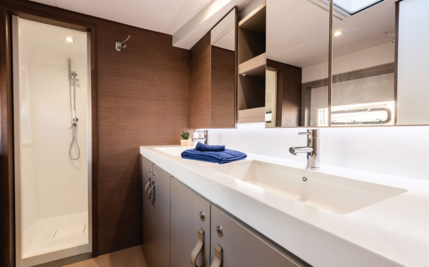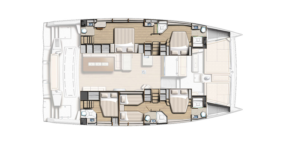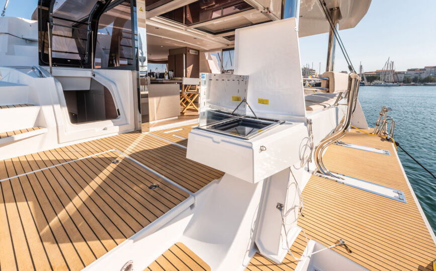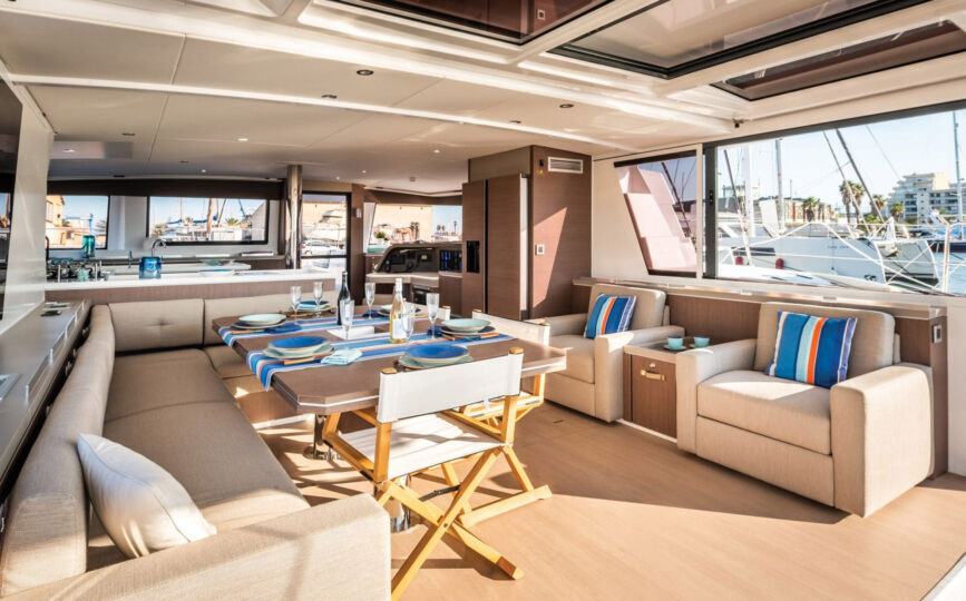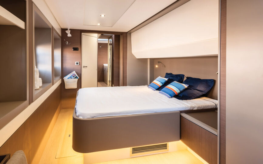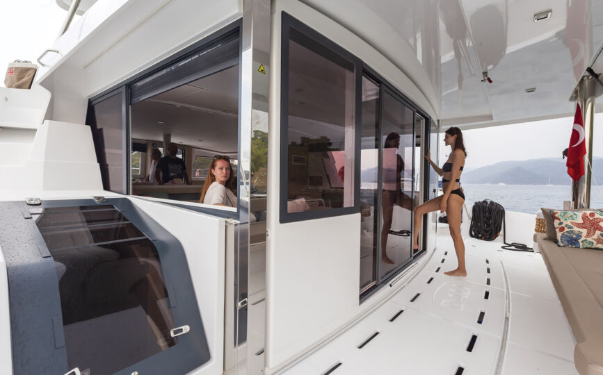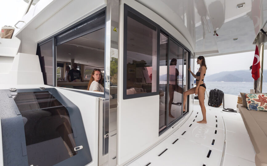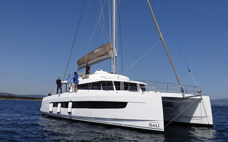 Caractérisé par des espaces de vie décloisonnés et très ergonomiques, le catamaran Bali 5.4 est le champion de l’espace habitable. Il se différencie de ses prédécesseurs par un accès au cockpit avant par une porte intérieure et aux cabines par des panneaux ouvrant sur le cockpit arrière. Avec ses 128,3 m² habitables le Bali 5.4 est le compagnon idéal de vos sorties en famille ou entre amis.