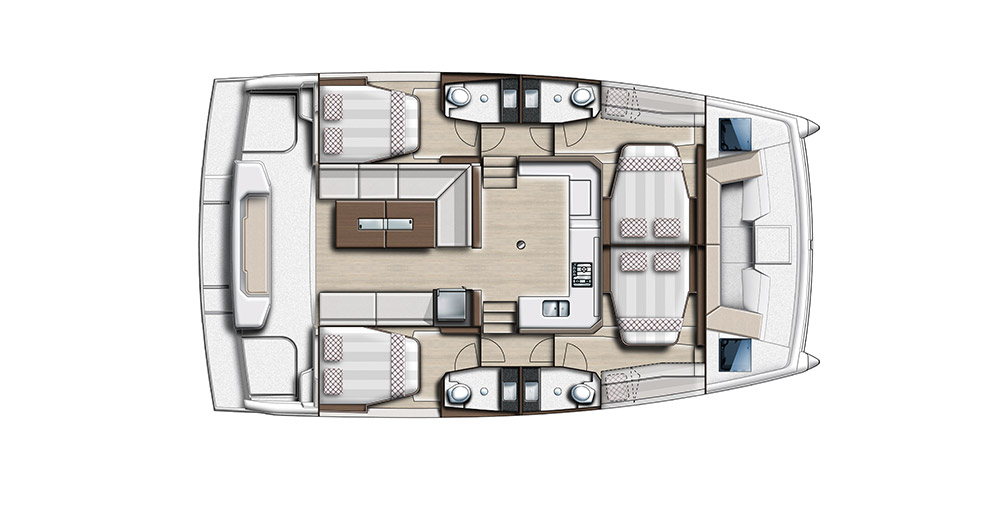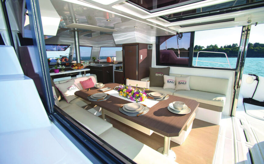 La performance et la qualité de cette gamme font de ce bateau, le catamaran idéal pour la location en croisière.