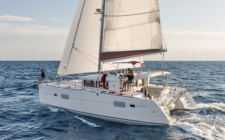 Le MAYA est un catamaran de 40 pieds des chantiers LAGOON. Spécifiquement conçu pour le confort en croisière, il offre des volumes habitables remarquables tout en gardant de belles performances sous voiles et moteurs.