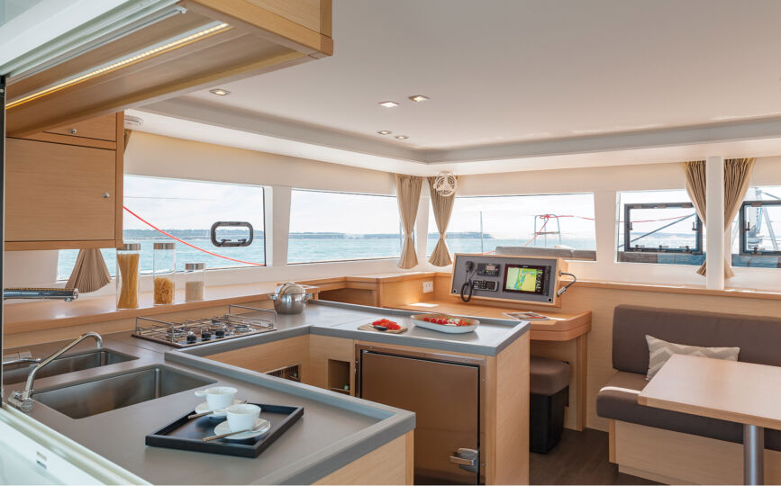 Ce magnifique catamaran de 45 pieds permet aux plaisanciers de naviguer dans des conditions de confort très agréables.